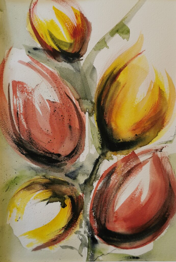 Färgstarka akvarellmålningar i fokus